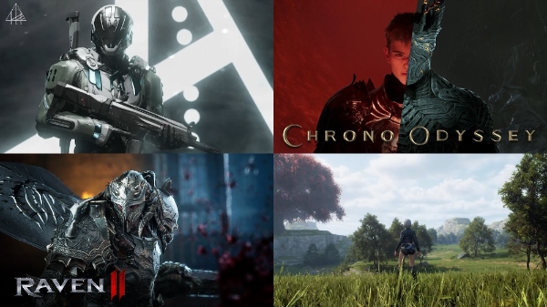이미지 확대보기왼쪽 위부터 시계 방향으로 엔씨소프트 'LLL(가칭)', 엔픽셀·카카오게임즈 '크로노 오디세이', 게임테일즈·컴투스 '더 스타라이트', 넷마블 '레이븐 2'. 사진=각 사