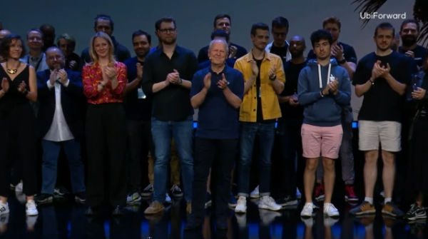 이미지 확대보기이브 기예모(Yves Guillemot) 유비소프트 대표(가운데)를 비롯한 임직원들이 유비소프트 포워드 2024 무대에 나서 관객들에게 인사하고 있다. 사진=유비소프트 공식 유튜브 채널