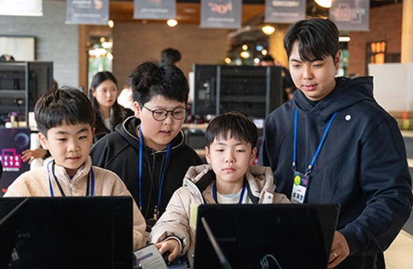 이미지 확대보기'호프 크리에이터' 프로그램에서 멘토가 아이들의 창작 활동을 돕고 있다. 사진=스마일게이트 희망스튜디오