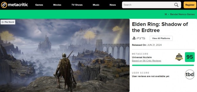 미국 리뷰 통계 사이트 메타 크리틱에는 19일 기준 총 56개 외신이 리뷰를 남겼으며 평균 평점은 95점(100점 만점) 기준이다. 전작 '엘든 링'의 96점에 버금가는 점수이며, 올해 신작 게임 중 '파이널 판타지 7 리버스', '철권 8', '데스티니 가디언즈' 확장팩 '최후의 형체' 등을 넘어 1위에 해당하는 점수다.