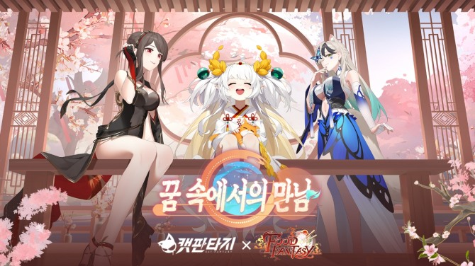 캣 판타지 X 테이스티 사가 컬래버게이션은 게임에 접속하면 확인 가능한 컬래버레이션 스토리 '꿈속에서의 만남'부터 본격 시작된다. 해당 스토리를 진행하는 과정에서 테이스티 사가의 인기 식신 '백미'와 '홍차'가 사라진 '도화주'를 찾아 나서는 도난 사건을 함께 파헤치기 위해 조사관으로 합류하게 되고, 현장에 남겨진 단서를 통해 ‘낙신: 주귀’가 꾸민 조직적인 범행이 추정되면서, 이들이 꾸민 음모를 해결해야 한다.