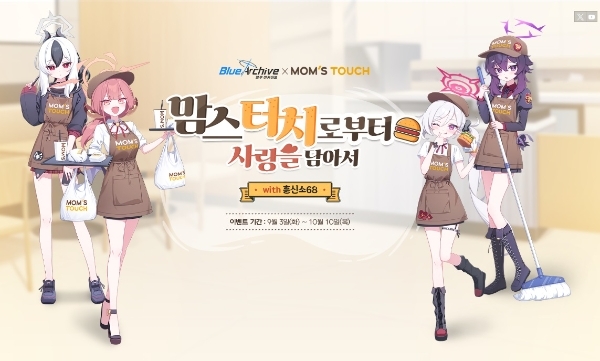 이벤트 기간 동안 서울 강남대로점과 부산 해운대점은 '블루 아카이브 팝업 매장'으로 꾸며진다. 메뉴 판매에 더해 블루 아카이브를 테마로 한 전시가 이뤄진다. 또 사전예약한 매장 방문객에게는 엽서·코스터 세트가 주어진다.