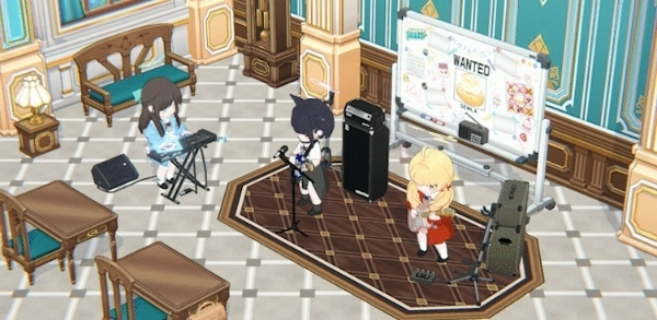 이미지 확대보기블루 아카이브 인게임에 추가될 예정인 '슈가 러시' 멤버들의 카페 특수 모션. 캐릭터는 왼쪽부터 아이리(밴드), 카즈사(밴드), 요시미(밴드). 사진=넥슨