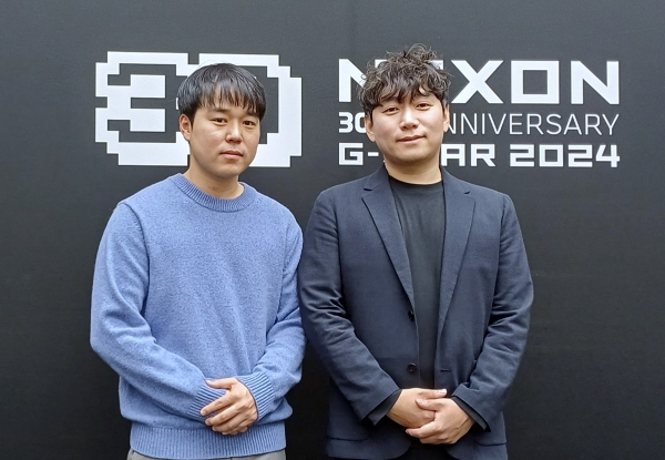 지스타 2024 넥슨 '오버킬(가칭)' 기자 간담회에 참여한 네오플의 박정완 디렉터(왼쪽)와 윤명진 대표. 사진=이원용 기자
