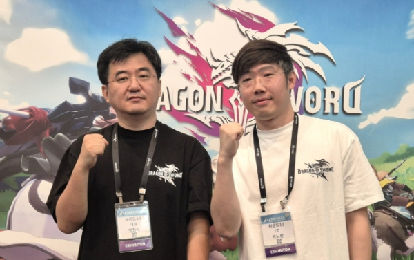 웹젠이 지스타 2024에서 차기작 '드래곤 소드' 기자 간담회를 열었다. 개발사 하운드13의 박정식 대표(왼쪽)와 곽노찬 크리에이티브 디렉터. 사진=게임기자단이미지 확대보기