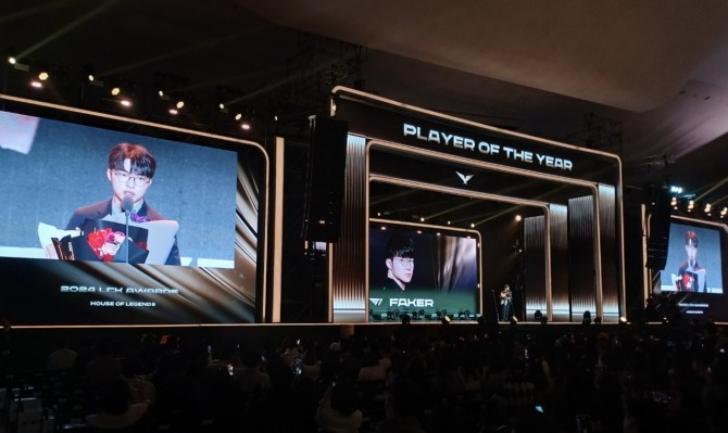 서울 동대문디지털플라자(DDP)에서 29일 열린 2024 LCK(LOL 챔피언스 코리아) 어워드 시상식에서 페이커 선수는 올해 최고의 선수이자 최고의 미드 라이너 상을 수상했다. 두 상 모두 지난해에 이어 2년 연속 수상이다.