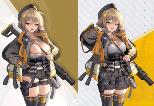 이미지 확대보기게임 '승리의 여신: 니케'의 캐릭터 '아니스'. 글로벌 버전(왼쪽)과 비교했을 때 중국 현지 버전은 노출도를 낮추는 등 검열이 적용됐다. 사진=시프트업, 텐센트