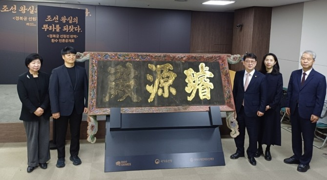국가유산청은 서울 경복궁 인근 국립고궁박물관에서 27일 '조선 왕실의 뿌리를 되찾다: 경복궁 선원전 편액 환수 언론 공개회'를 가졌다. 최응천 국가유산청장을 비롯한 국가기관 관계자들은 물론 라이엇 게임즈 코리아의 조혁진 대표 등이 함께했다.