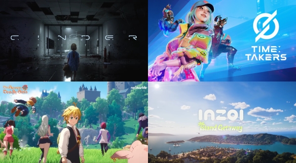 이미지 확대보기게임스컴 2025 오프닝 나이트 라이브를 통해 공개된 국산 게임들. 왼쪽 위부터 시계 방향으로 엔씨소프트 '신더시티', '타임 테이커즈', 크래프톤 '인조이: 섬으로 떠나요', 넷마블 '일곱 개의 대죄: 오리진'. 사진=각 사