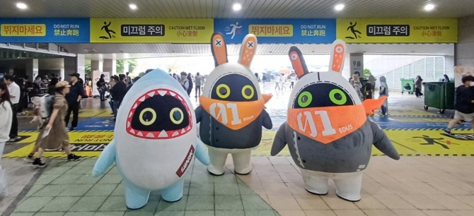 이미지 확대보기경기도 일산 킨텍스에서 '호요랜드2025'가 10월 9일부터 12일까지 열렸다. 제2전시장 후면광장으로 나가는 출입구에 호요버스 게임 '젠레스 존 제로(ZZZ)'의 마스코트 '방부'들이 모여있다. 사진=이원용 기자