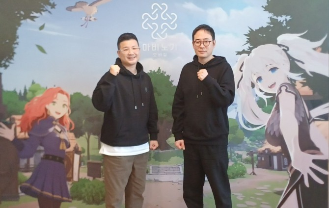 이미지 확대보기강민철 넥슨 사업실장(왼쪽)과 이진훈 데브캣 마비노기 모바일 디렉터. 사진=이원용 기자