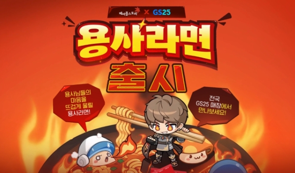 넥슨이 GS리테일과 협업 개발한 게임 '메이플스토리' 테마 컵라면 '용사라면'의 판매가 29일 시작된다.