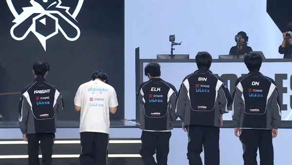 이미지 확대보기2025 리그 오브 레전드(LOL) 월드 챔피언십에 출전한 중국 빌리빌리 게이밍(BLG) 선수들이 16강 탈락이 확정된 후 경기장에서 퇴장하고 있다. 사진=LOL e스포츠 공식 유튜브 채널