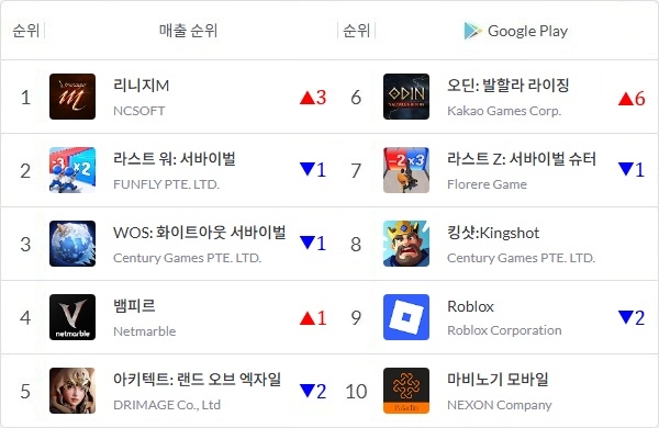 아이지에이웍스 앱 통계 분석 플랫폼 모바일인덱스에 따르면 리니지M은 지난달 13일을 기점으로 매출 1위에서 내려왔다. 넷마블의 '뱀피르'와 드림에이지 '아키텍트: 랜드 오브 엑자일', 중국 전략 게임 '라스트 워: 서바이벌' 등이 1위를 두고 경쟁했다.