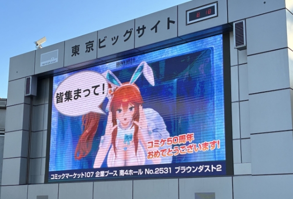 제107회 코믹마켓(C107)이 열린 도쿄 빅사이트 대형 스크린에서 '브라운더스트2' 광고를 하고 있다. 사진=네오위즈