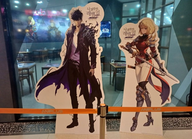 이미지 확대보기애니플러스샵 인근에 전시된 '나 혼자만 레벨업: 어라이즈' 이미지. 사진=이원용 기자