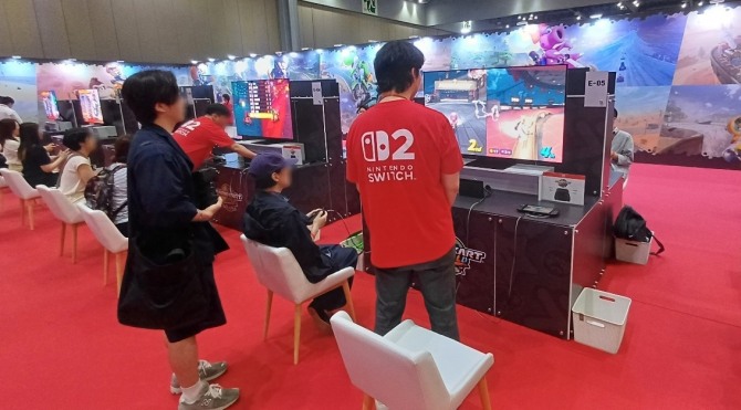 현장 입구에선 스위치 2의 새로운 콘솔 기기 '조이콘 2'와 기기와 동시에 출시될 예정인 '마리오 카트 월드'를 차례로 시연할 수 있다. 마리오 카트 월드의 경우 동행자와 함께 2인이 스위치 2 휴대용 버전으로 1회, 독 모드로 별도 스크린과 연결해 플레이하는 버전으로 1회 총 2회 시연할 수 있는 형태다.