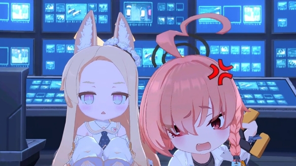 이미지 확대보기넥슨의 '블루 아카이브' 이벤트 '코드박스: 밀레니엄에 다가오는 그림자' 컷씬에 등장한 유리조노 세이아(왼쪽)와 미카모 네루를 캡처한 것. 사진=블루 아카이브 인게임 화면 캡처
