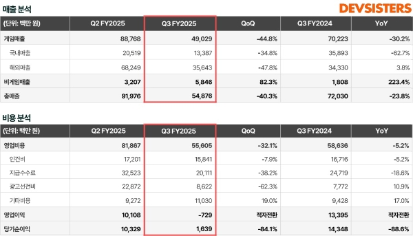 데브시스터즈 2025년 3분기 실적 발표 자료. 사진=데브시스터즈