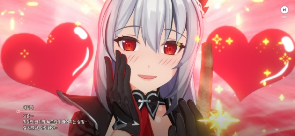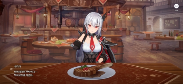 이미지 확대보기어비스디아 미디어 시연 중 인게임 캐릭터 '세티아'의 '같이 먹자' 컷씬 초반부 모습. 사진=링게임즈