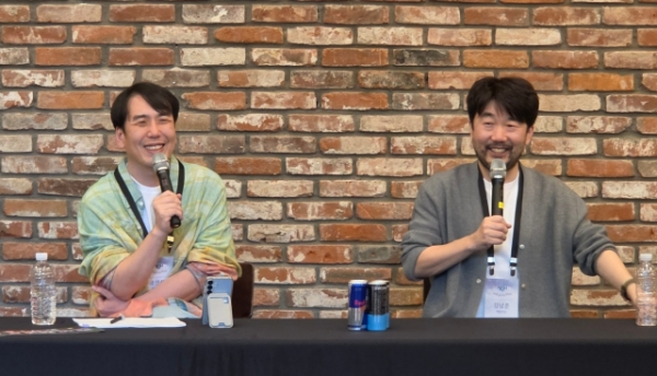 엔씨가 서울 강남 소재 알베르 카페에서 4월 11일 아이온2 현장 간담회 '지금 만나러 갑니다'를 개최했다. 소인섭 엔씨 사업실장(왼쪽)과 김남준 아이온2 PD가 현장을 찾아 게이머들의 질문에 답변하고 있다. 사진=엔씨이미지 확대보기