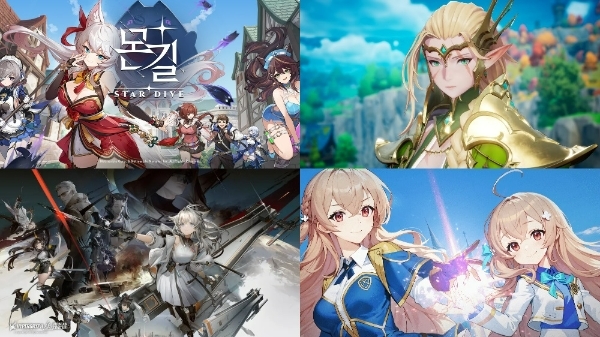 이미지 확대보기왼쪽 위부터 시계 방향으로 넷마블 '몬길: 스타다이브', 웹젠 '드래곤소드', 라이온하트 스튜디오 '프로젝트C(가칭)', 하이퍼그리프 '명일방주: 엔드필드'. 사진=각 사