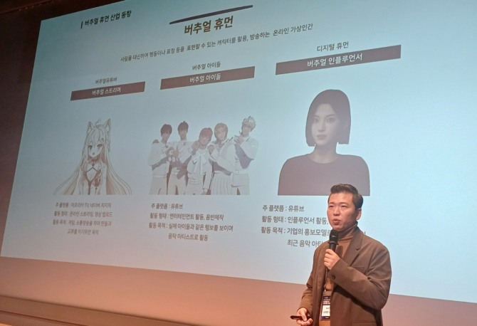 이미지 확대보기한국버추얼휴먼산업협회(KOVHIA)가 12월 6일 '2024년 정기 총회'를 개최했다. 서국한 KOVHIA 공동협회장이 2024년 정기 총회에서 발표를 하고 있다. 사진=이원용 기자