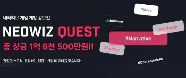 이번 네오위즈 퀘스트는 세계관과 스토리, 캐릭터가 유기적으로 연결된 탄탄한 서사(내러티브)의 중요성에 대한 공감대를 형성하고 이야기 중심의 게임을 개발할 수 있는 환경을 지원하는 것을 목표로 한다.