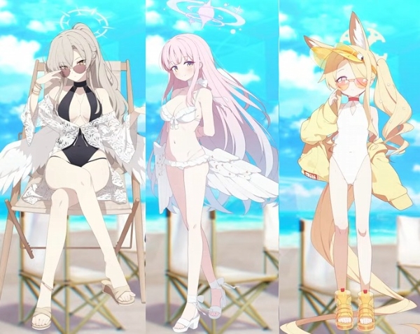 '블루 아카이브'에 추가될 예정인 '티파티' 캐릭터들의 수영복 버전. 왼쪽부터 '나기사', '미카', '세이아'. 사진=넥슨게임